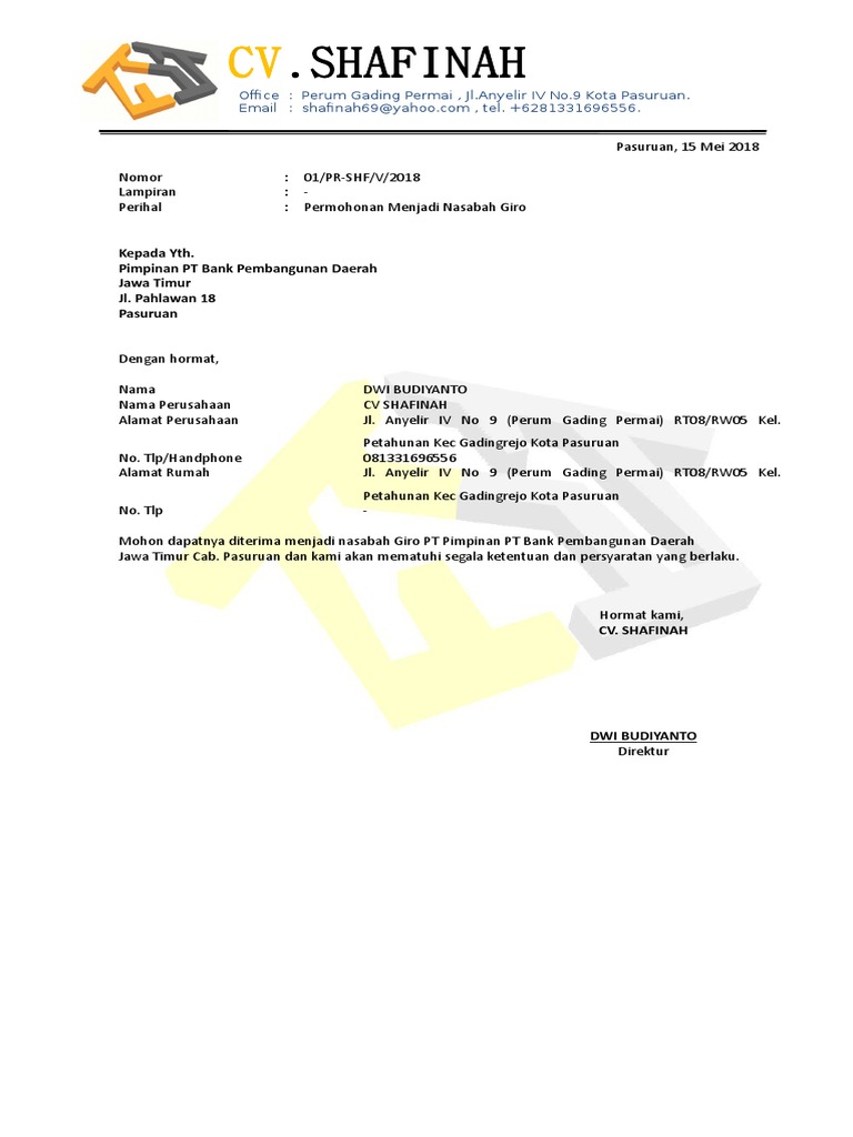 | Judul: 12 Contoh Surat Permohonan Pembukaan Rekening Giro Lengkap Info Wisata Hits |